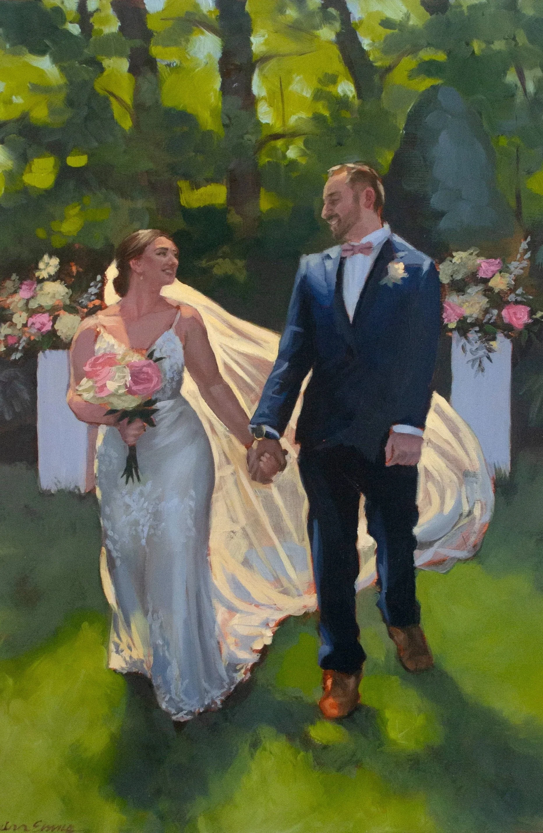 In addition to the live guest painting, you may opt to add an oil portrait! These larger format pieces are ideal for capturing the newlyweds in a more detailed and expressive manner: